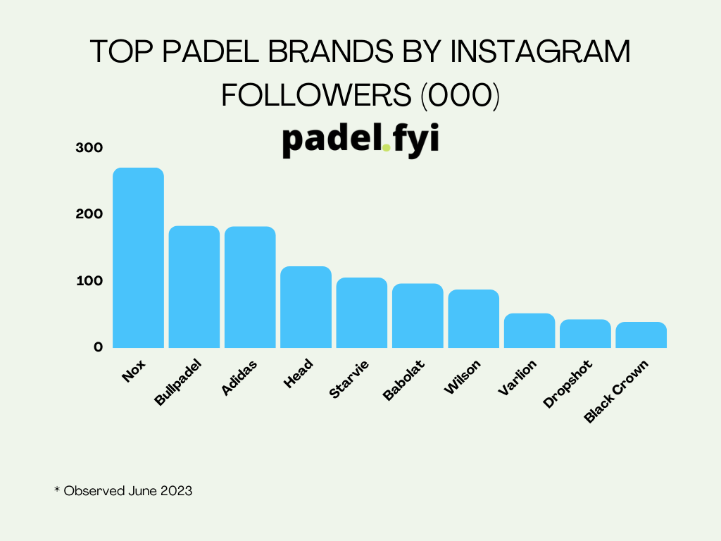 Nox возглавил список с 272 тыс. подписчиков в Instagram, что примерно на 33% больше, чем у Bullpadel и Adidas, занявших второе и третье места соответственно, с 184 тыс. и 183 тыс. подписчиков.