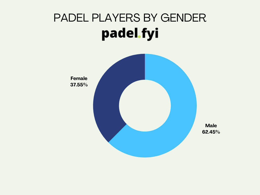 Мужчины составляют 62,45% игроков в падель, а женщины — 37,55% от общего числа игроков (Brainy Insights).